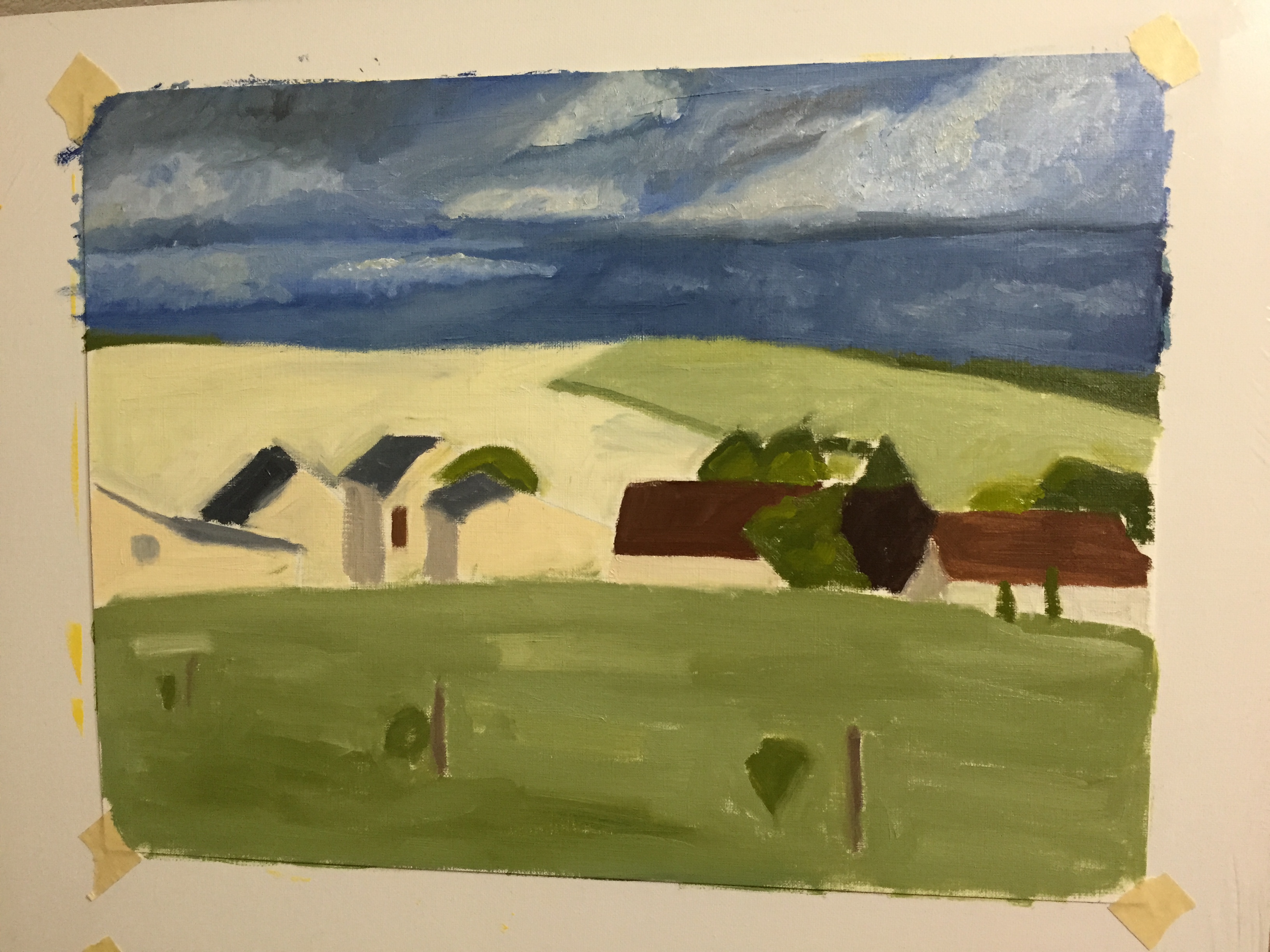 More progress this weekend on the practice sessions for the Loire Valley countryside piece. Added the first pass at details to the sky on the oil on paper. I’ve done clouds in graphite before, but never detailed painting. Learned a lot about what not to do, most notably trying to be too precise and layered paint to thickly. Need to go with looser brush strokes and thinner paint, I think. Advice is welcome, so comment if you have some helpful guidance please.