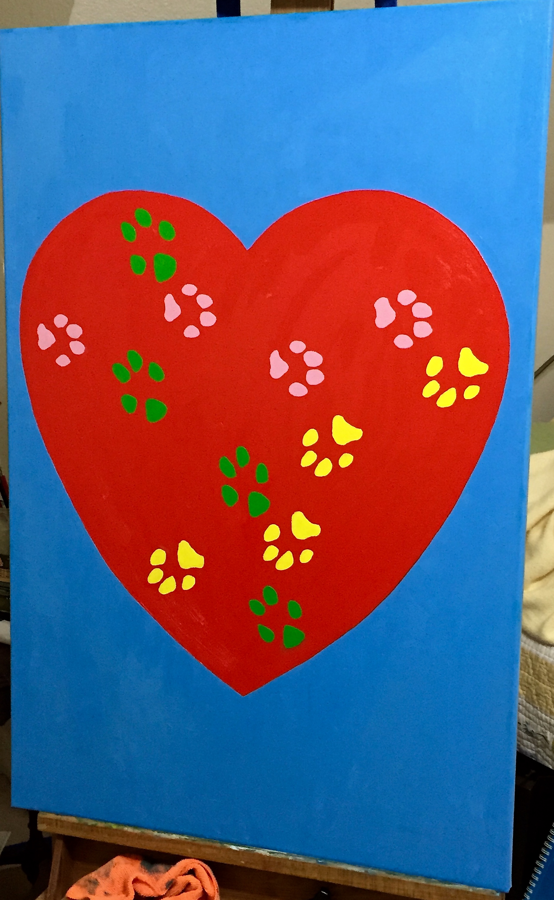 The process for getting the dog’s paw prints on the painting is worthy of a separate post, so I’ll pause here today and give an update on that entertaining adventure in my next update.