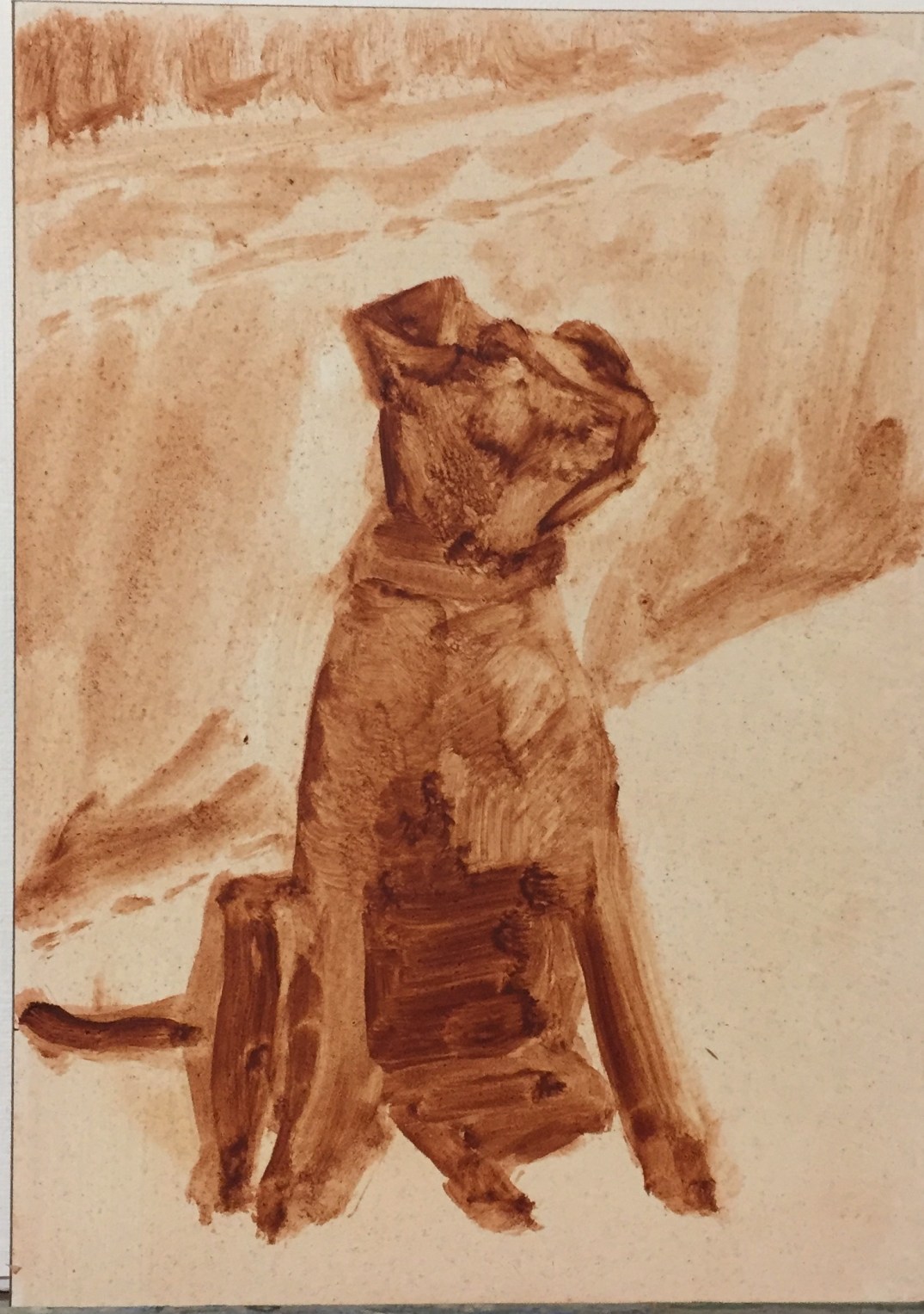 Starting a new painting based on one of the hour challenge sketches from last week. This is Crash looking at squirrels in the tree when she was a year old – long time ago.