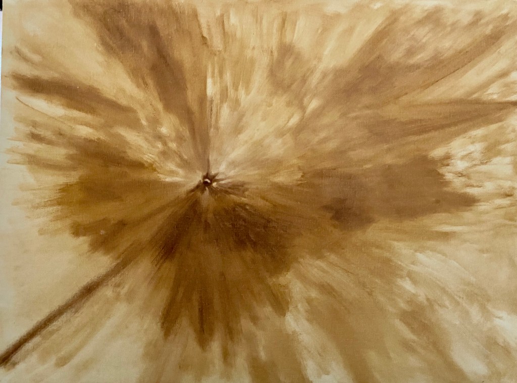 After the block-in, which was described in the Meteors and Squirrels post last month, I focused on the colors. It was at times infuriating trying to create other worldly space dust hues, but I kept at it until I found something that resonated with me. Along the way, I will admit, there was a lot of wasted paint. The solution was glazing, whereby I was able to push and pull the hue and intensity as needed through thin layers atop an initial color scheme. There were 3 glaze layers in total, but the first one was the most impactful, essentially making the whole piece pop and really come alive! It was an exciting moment and something I absolutely love as an artist, namely when you make a creative decision to change the approach and it actually works! Hell yeah!