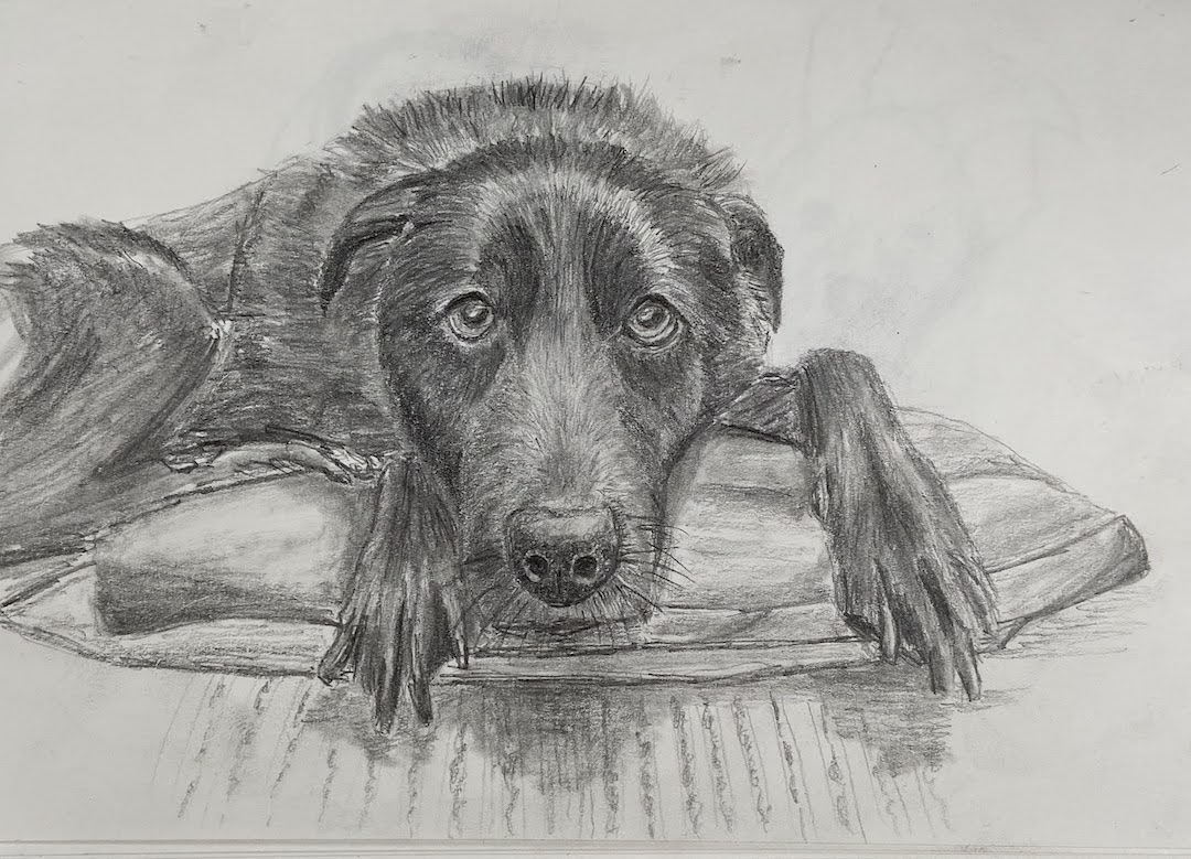 Drawing dogs is very tedious, but it’s offset by very rewarding outcomes. The process of drawing hair via thousands of “strokes” is a test of patience, which artists really need, but oftentimes it can be elusive as you’re excited to get a composition done. Vedder is an older pup, how old I’m not sure, so he has features such as white hairs and a well-used dog nose. These are very tricky to get onto the paper with graphite only. As you can tell from this composition I missed the mark on that front, but the rest of the details I hope capture the personality of Vedder. I’ll have to cross post this on Facebook to see if my friend has an opinion.