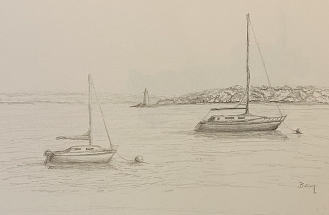 Dead Calm in Casco Bay | 9 x 12” | Graphite on Paper
