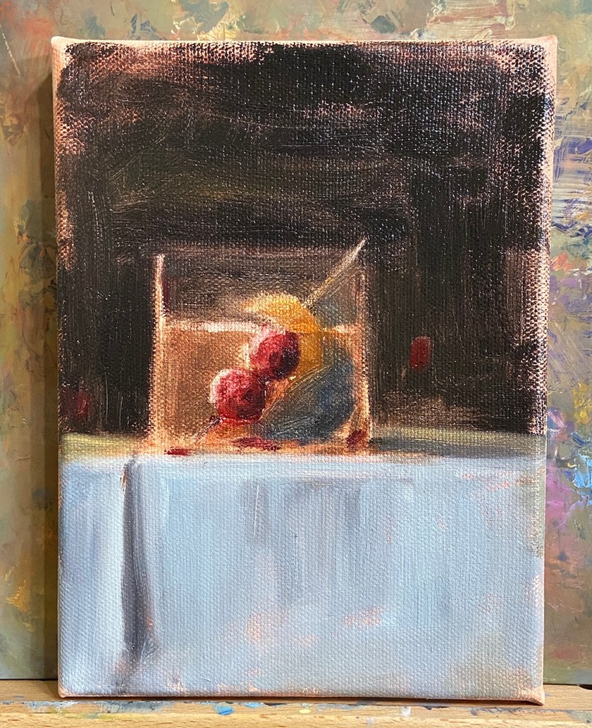 SMOKY OLD FASHIONED is a recent commission piece, something I love doing, especially when it’s for a gift or something sentimental. In this instance, the painting is for a gift for someone who apparently has everything. Painting to the rescue!