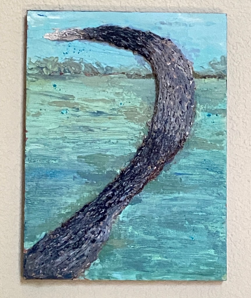 Our beloved pup, Zip – aka “Zippy”, “Zipster”, “Zipper”, “Toot”, “The Pip” and dozens of other nicknames – took her trip to the Rainbow Bridge a couple months ago. She was a HUGE personality, the boss of any space she occupied, and a precious family member who will be forever in our hearts. She loved food, playing ball, car rides, hikes, and she even enjoyed the occasional trip with me into the landscape to paint “en plein air”. But more than anything in the world, she loved to swim, especially if a stick was involved. ZIP TOOT is a nod to her larger than life personality doing what she loved more than anything else.