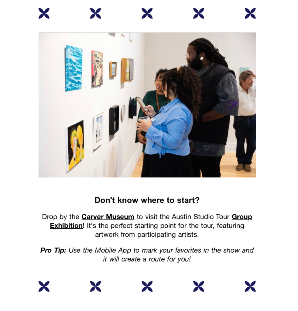 Get out and explore the talent of Austin artists! Hope to see y’all next weekend!