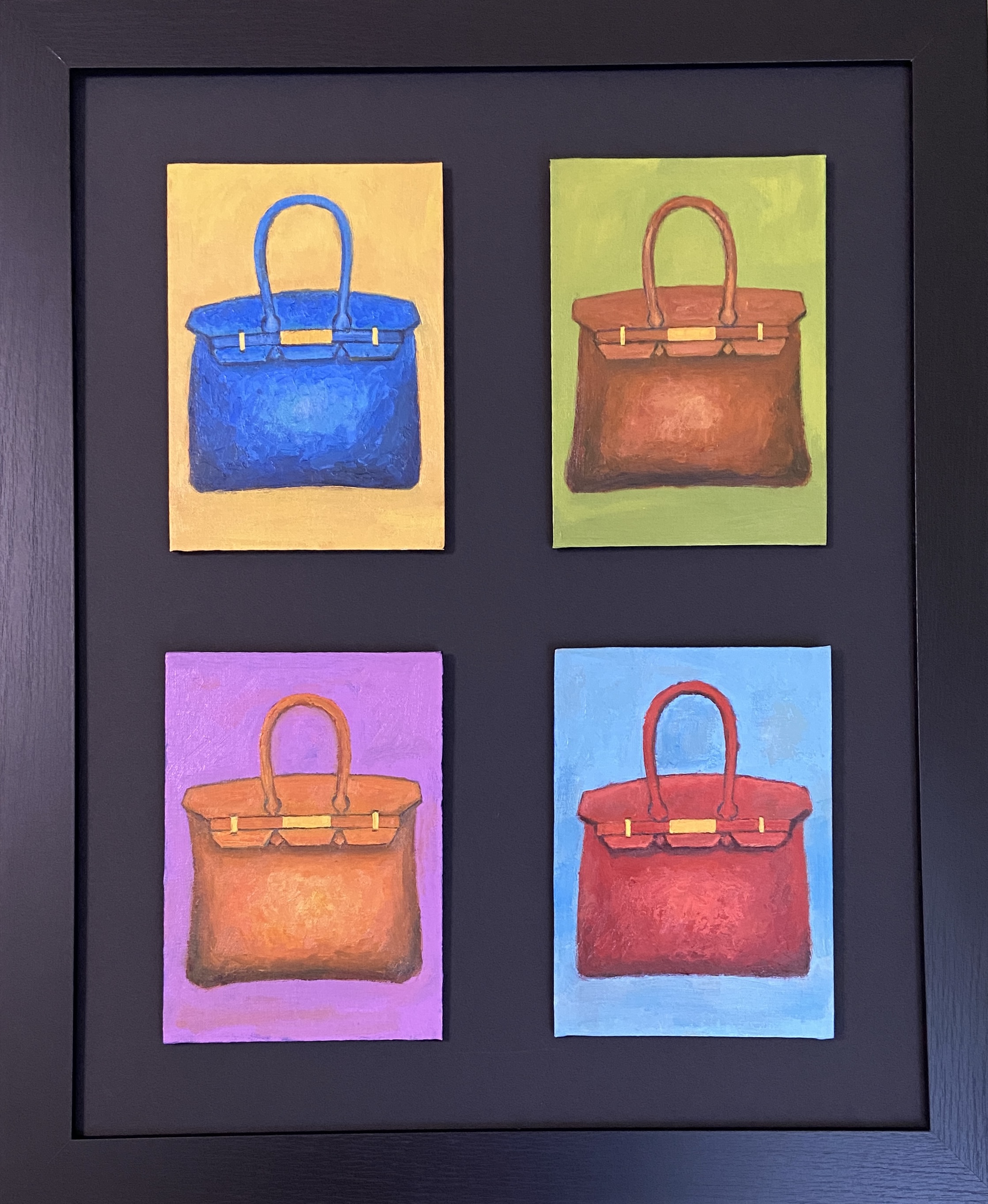 Finally, the Birkins are done and assembled as the ultimate quadriptych, ENVY! Hopefully it’s readily apparent that this composition is inspired by Andy Warhol, which is somewhat ironic because Warhol’s work never resonated with me. That said, I can’t deny he had some uniquely creative compositions that piqued one’s interest.