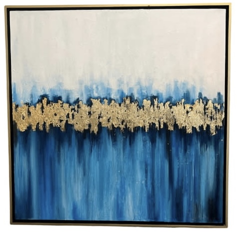 There were two primary enhancements I made to this abstract piece, one a brilliant suggestion from my wife, the other a need to play with impasto mediums. First, my wife noted that our niece is a big Cowboys football fan, so why not substitute the metallic gold of the original with silver. For the uninitiated to the cult of Jerry Jones, the team colors are blue and silver, thus the resulting palette. The other detour was the introduction of thick impasto elements, which I felt would add further interest to an otherwise limited composition.