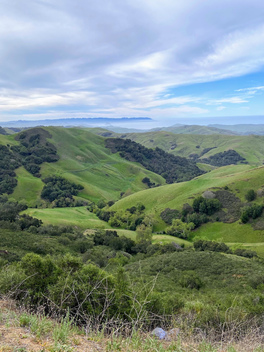 We took a beautiful drive from Paso Robles, CA to Morro Bay. Along the way we came across this stunning view, giving a first glance of the ocean as we wound through the hills. As you can see from the reference photo, it’s beautiful, but as an artist you see a whole lotta green!
